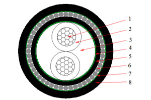 1. Conducteur: Cuivre ou aluminium, Classe 1: conducteur solide, ou Classe 2: conducteur toronné 2. Isolation: Polyéthylène réticulé XLPE 3. Remplissage: Matériau non hygroscopique 4. Armure du conducteur: Matériau non hygroscopique 5. Gaine interne: Chlorure de Polyvinyle PVC 6. Armure: Fil d’acier à faible taux de carbone 7. Armure du conducteur: Matériau non hygroscopique 8. Gaine externe: Chlorure de Polyvinyle PVC |