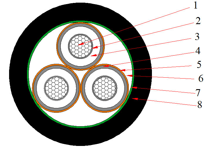 Le câble tripolaire moyenne tension est approprié pour les utilisations dans les réseaux électriques, dans les installations extérieures fixes dans les conduites de câble ou les installations sous terraines directes. La stabilité opérationnelle du câble est faisable grâce au faible facteur de perte diélectrique, à l’excellente propriété d’isolation XLPE et la solide liaison avec un écran de conducteur et un écran d’isolation de matériau semi-conducteur (extrudé dans un processus), ce qui le rend largement utilisé dans les stations de transformation, les centrales de puissance électrique et les centrales industrielles.